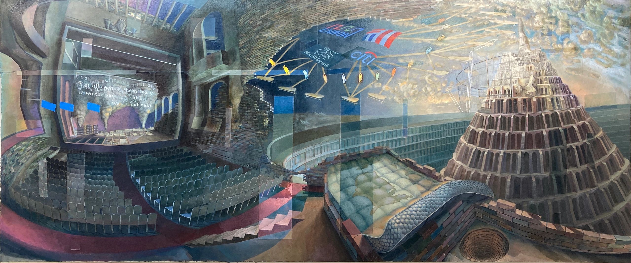 Oil on paper mounted on canvas, 38” x 92”, 2019-2023